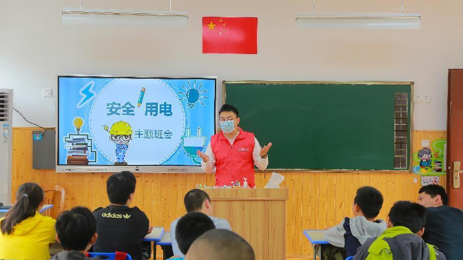 國(guó)網(wǎng)浙江諸暨供電公司志愿者在諸暨市東和鄉(xiāng)初中電力愛心教室,為同學(xué)們科普安全用電知識(shí)