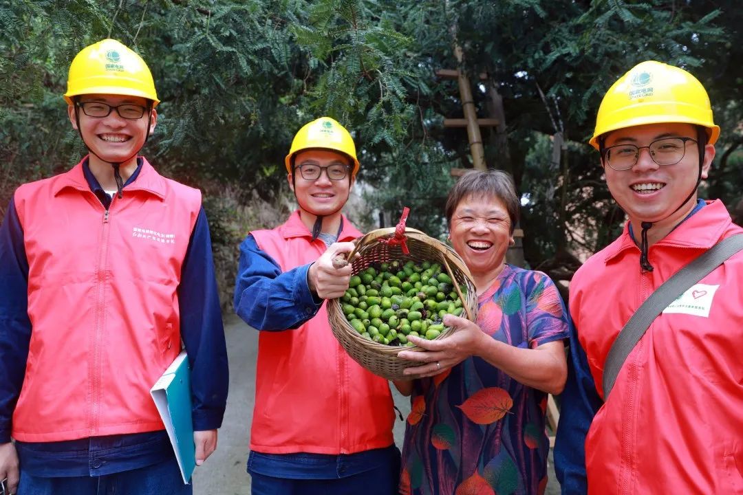 國家電網(wǎng)浙江電力(諸暨)紅船共產(chǎn)黨員服務(wù)隊來到趙家鎮(zhèn)里宣村服務(wù)香榧種植戶,確保豐收季用電無憂。
