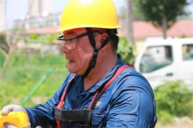 國(guó)網(wǎng)山東濱州供電公司員工完成帶電作業(yè)后,絕緣服下的工作服被汗水濕透。