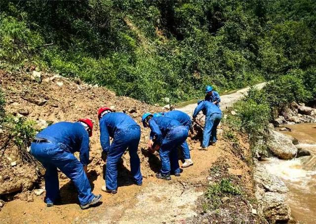 國(guó)網(wǎng)陜西漢中供電公司員工清理滑坡點(diǎn),打通電力搶險(xiǎn)通道。