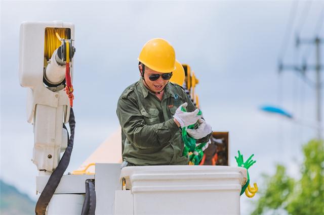 國(guó)網(wǎng)安徽銅陵供電公司員工進(jìn)行帶電作業(yè)準(zhǔn)備工作。