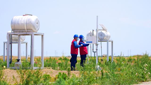 國網(wǎng)東營供電公司工作人員在試驗基地安裝微環(huán)境氣象監(jiān)測站和作物生長環(huán)境監(jiān)測傳感器