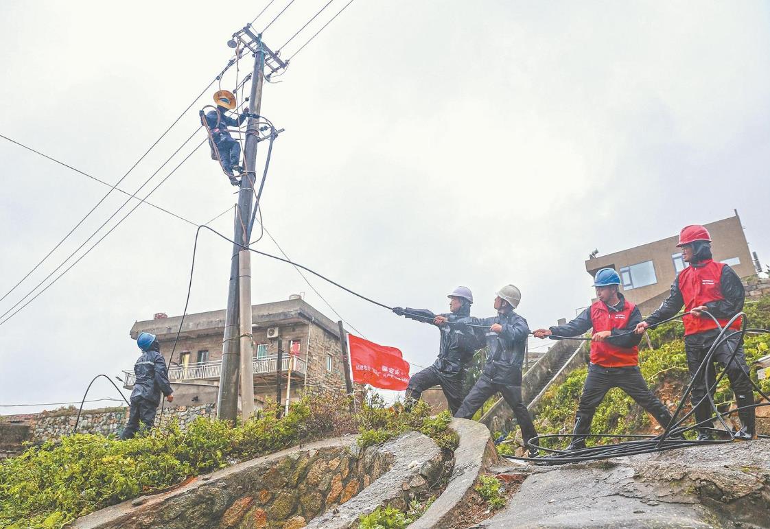 上杭縣供電公司員工加緊搶修,及時(shí)恢復(fù)該村120余戶村民的正常用電。陳金來(lái) 攝