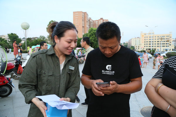 中國(guó)電力網(wǎng)訊 “大叔您看,只需下載網(wǎng)上國(guó)網(wǎng)APP,綁定戶號(hào),就可以實(shí)時(shí)查詢電費(fèi)、繳費(fèi),現(xiàn)在繳費(fèi)還可以抽電費(fèi)紅包呢……”7月17日晚,國(guó)網(wǎng)樂(lè)安縣供電公司青年志愿者在縣城四九廣場(chǎng)擺開(kāi)攤位,開(kāi)展“網(wǎng)上國(guó)網(wǎng)”宣傳推廣活動(dòng)。