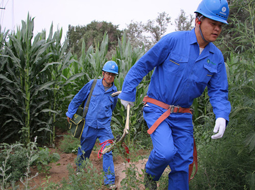 中國(guó)電力網(wǎng)訊 “未來(lái)一個(gè)月是農(nóng)田排灌高峰負(fù)荷期,我們的任務(wù)就是要確保線(xiàn)路和設(shè)備的最佳運(yùn)行狀態(tài),做好保供電工作,幫助村民兄弟農(nóng)作物的正常生長(zhǎng)。”烏海電業(yè)局千里山農(nóng)電所“防洪抗旱服務(wù)小分隊(duì)”隊(duì)長(zhǎng)陳彥章和他的同事早早地就開(kāi)始了一天的工作。當(dāng)前玉米生長(zhǎng)進(jìn)入接穗期,為確保玉米豐收,連日來(lái),烏海電業(yè)局農(nóng)電處千里山農(nóng)電所工作人員奔走在田間地頭,對(duì)所轄的灌溉線(xiàn)路及配電設(shè)施進(jìn)行檢查、維護(hù)檢修,針對(duì)發(fā)現(xiàn)的隱患和存在的問(wèn)題及時(shí)整改治理,保證設(shè)備處于健康狀態(tài),確保農(nóng)作物生長(zhǎng)期間農(nóng)戶(hù)生產(chǎn)用電安全可靠。