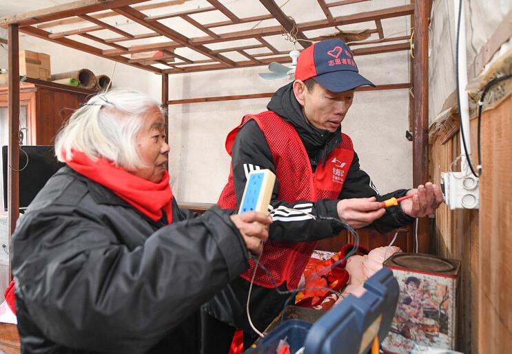 1月8日,志愿者帶著禮物來到老人家中,他們給老人圍上溫暖的圍巾,穿上厚實(shí)的外套,并給她鋪上嶄新的被子,老人笑得合不攏嘴。同時(shí),志愿者還對老人房中的室內(nèi)電氣線路進(jìn)行了檢查與維修,為其確保用電安全。志愿者胡群豐表示:“天氣寒冷,能夠給老人送上安全與溫暖,我們很自豪。”