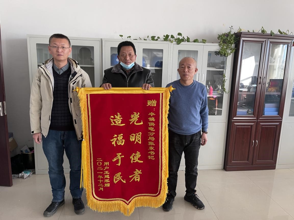 中國(guó)電力網(wǎng)訊 12月1日,豐鎮(zhèn)市黑土臺(tái)31號(hào)村養(yǎng)殖戶王建軍將一面“光明使者 造福于民”的錦旗送到豐鎮(zhèn)供電分局,對(duì)該分局盡職盡責(zé)、熱情周到的服務(wù)表示高度贊揚(yáng)和誠(chéng)摯感謝。