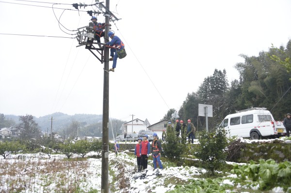 在一些鄉(xiāng)鎮(zhèn)山區(qū),由于海拔較高,幾乎所有花草樹木、房屋良田都在一夜之間白了頭。被積雪壓斷的樹竹、壓彎的毛竹等造成山區(qū)、鄉(xiāng)鎮(zhèn)多處電力設(shè)施受損,國網(wǎng)撫州市南豐縣供電公司迅速啟動應急響應,多方聯(lián)動,組織搶修人員對受冰雪影響的故障線路進行全面巡視和應急搶修,爭取在最短時間內(nèi)恢復電力供應。