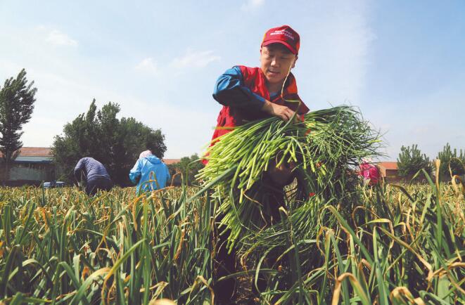 2017年年初,白橋鎮(zhèn)引入“龍頭企業(yè)+基地+合作社+農(nóng)戶”的發(fā)展模式。大蒜深加工龍頭企業(yè)與村里的合作社、大蒜種植大戶簽訂協(xié)議,保價(jià)收購大蒜,并將大蒜加工成價(jià)值更高、便于運(yùn)輸和儲(chǔ)存的產(chǎn)品,讓當(dāng)?shù)胤N植戶增收。