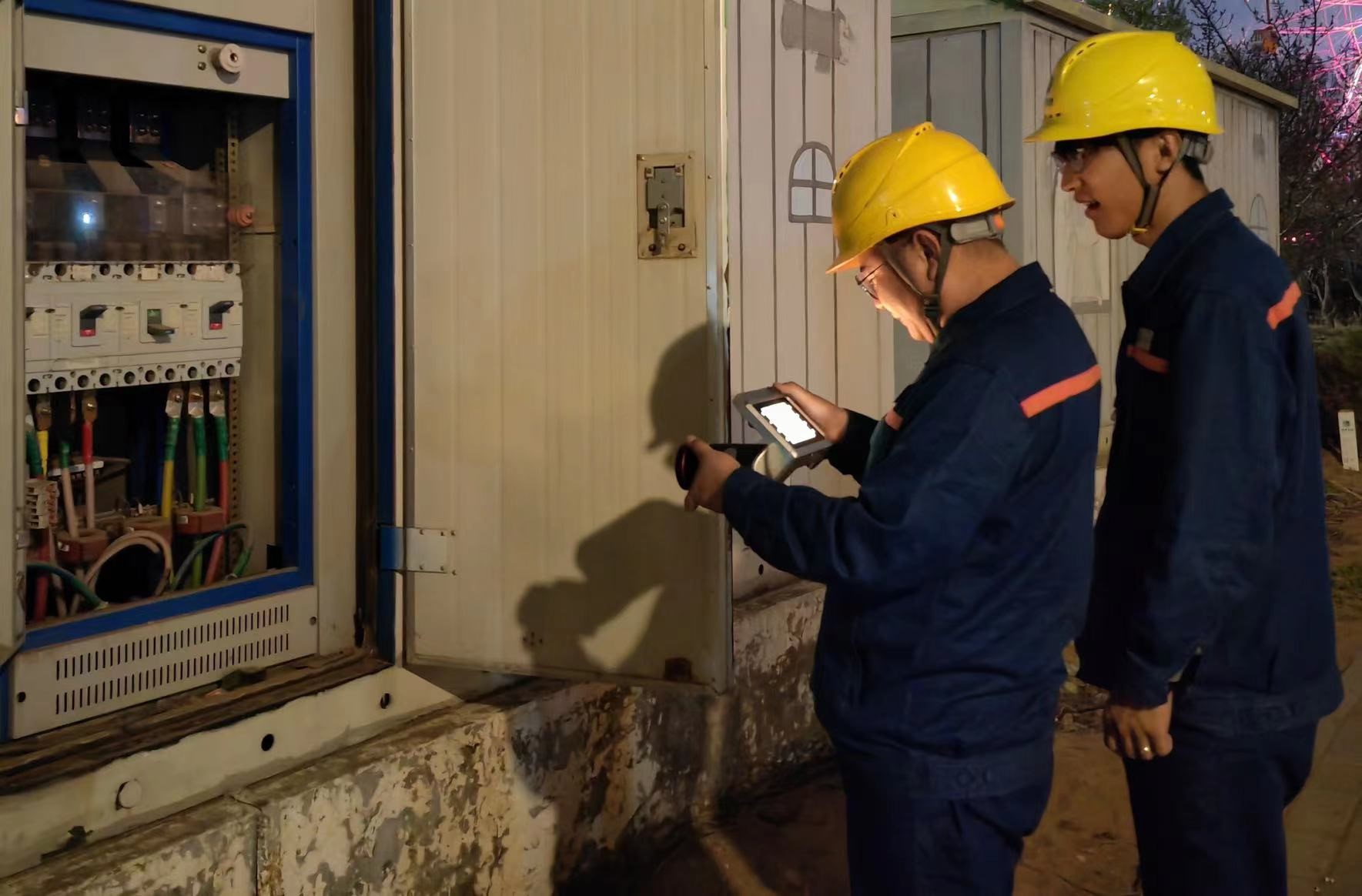 6月24日20時(shí),熙熙攘攘的人群里,郭智遠(yuǎn)和袁小龍穿行其中。今晚,他倆要完成蒙欣廣場(chǎng)和德榮2個(gè)夜市的用電安全檢查。“迎峰度夏期間工作量大,全憑兩條腿,必須要到現(xiàn)場(chǎng)實(shí)際檢查才能放心。”他們利用紅外測(cè)溫儀通過(guò)電暈、局部放電、溫升燒紅等現(xiàn)象來(lái)發(fā)現(xiàn)導(dǎo)線連接器及絕緣子存在的缺陷。對(duì)蒙欣廣場(chǎng)夜市、德榮夜市線路刀閘閘口、接頭、導(dǎo)線線夾等易發(fā)熱部位進(jìn)行全方位檢查,及時(shí)掌握設(shè)備運(yùn)行狀態(tài),避免設(shè)備出現(xiàn)故障。結(jié)束了夜市的用電安全檢查,收拾好工器具,已是22:20,但汗流浹背的兩個(gè)人并沒(méi)有回程,他們還要前往體育館的10千伏線路開(kāi)展夜巡工作。