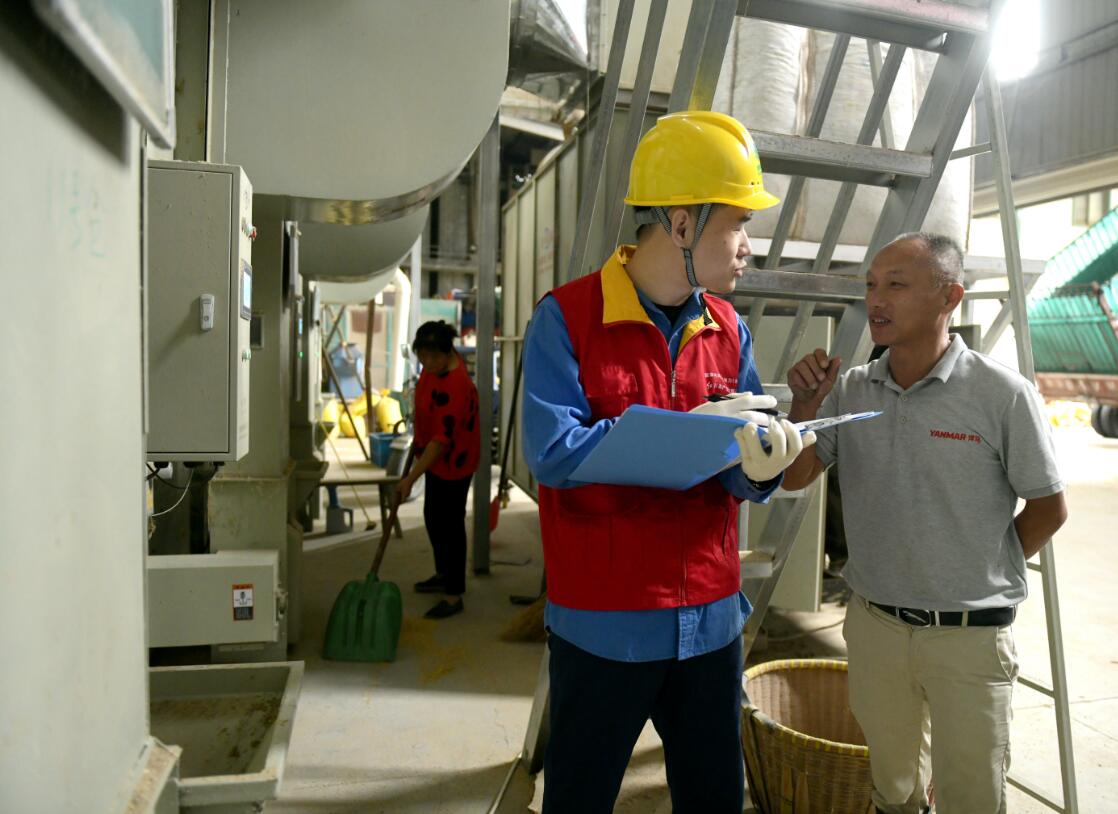糧食種植和生產(chǎn)是“國(guó)之大者”,確保糧食和重要農(nóng)戶的可靠用電,一直以來(lái)都是宏宇公司積極服務(wù)鄉(xiāng)村振興的重點(diǎn)工作??紤]到秋收將至,為確保大批稻谷加工高峰期期間用電安全,宏宇公司成立秋收保電小組,提前深入田間地頭對(duì)涉農(nóng)供電線路和設(shè)備進(jìn)行排查,上門走訪轄區(qū)內(nèi)農(nóng)機(jī)站、糧庫(kù)等重要用戶,及時(shí)消除可能存在的安全隱患,助力農(nóng)戶秋收顆粒歸倉(cāng)。