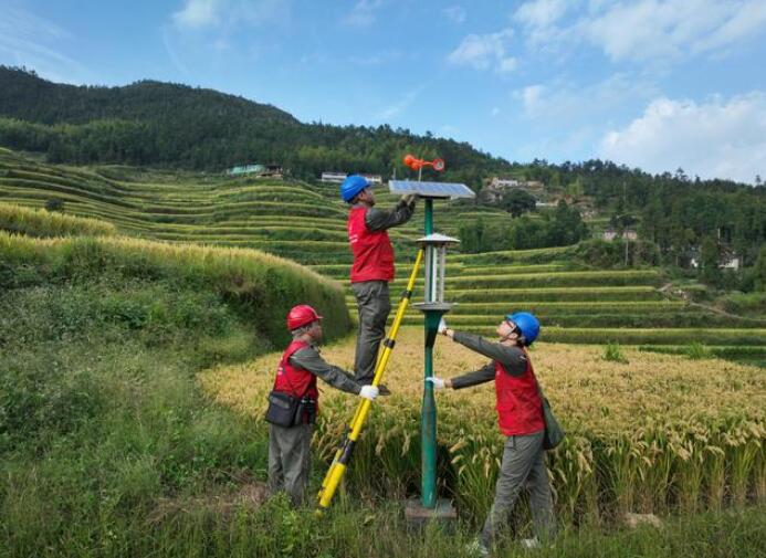 日前,國網(wǎng)瑞安市供電公司員工走進稻谷飄香的林川梯田,對田間的供電設(shè)備、線路開展隱患排查,保障秋收期間用電無憂。在海拔650米高山上的林川梯田,素有“浙江十大美景”之稱,盛產(chǎn)綠色有機稻米。當(dāng)天,3名供電公司工作人員穿梭在田間小道上,他們利用望遠鏡對沿途輸電線路進行巡視,操作無人機對線路通道、異物懸掛等進行排查,為及時發(fā)現(xiàn)電力設(shè)施運行隱患提供可靠依據(jù)。排查結(jié)束后,他們還向農(nóng)戶詳細了解農(nóng)業(yè)用電需求和負荷情況,把優(yōu)質(zhì)服務(wù)送到田間地頭,精準(zhǔn)助農(nóng),用實際行動服務(wù)農(nóng)戶秋收,“電”靚鄉(xiāng)田“豐”景。