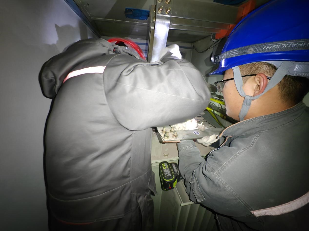 接到任務(wù)后,“電靚暖城”共產(chǎn)黨員服務(wù)隊(duì)第一時(shí)間趕往現(xiàn)場(chǎng),經(jīng)過現(xiàn)場(chǎng)勘查發(fā)現(xiàn),由于大雪極寒天氣,居民取暖用電量急速攀升,導(dǎo)致負(fù)荷不均勻,小區(qū)箱變低壓母排燒損導(dǎo)致停電。由于夜間光線不足,給搶修工作增加了難度??蛋褪补╇姽旧a(chǎn)技術(shù)室迅速確認(rèn)搶修方案,組織人員有序投入到搶修工作中,同時(shí)在供電服務(wù)群中向客戶實(shí)時(shí)反饋搶修進(jìn)度和現(xiàn)場(chǎng)工作照片,得到了廣大群眾的理解和支持,消除了群眾對(duì)突發(fā)停電存在的疑慮。“天寒地凍家里突然停電,感覺心里都是涼的,看到你們過來,心里就像吃了定心丸,看到了希望。”神華小區(qū)87號(hào)樓業(yè)主說。