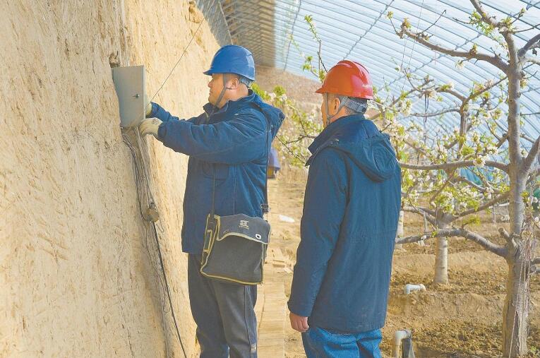 1月23日,國家電網(wǎng)蒙東電力蒙古馬(松山安慶)共產(chǎn)黨員服務(wù)隊隊員魏景峰和代艷軍到當鋪地滿族鄉(xiāng)大興隆村農(nóng)業(yè)園區(qū)的櫻桃大棚回訪,幫忙檢查用電情況。