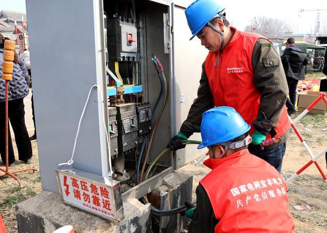 國網(wǎng)寶豐縣供電公司工作人員為馬街書會(huì)主會(huì)場架設(shè)臨時(shí)電源
