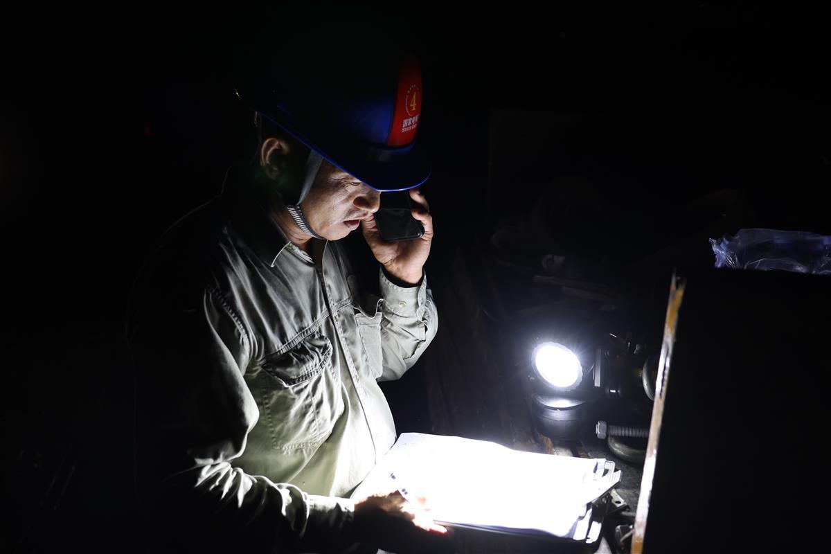 國網(wǎng)石首市供電公司的工作人員在夜色中施工作業(yè)