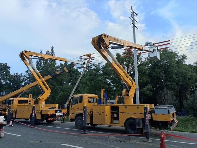 搶修方案一出,國網(wǎng)郫都供電公司各相關(guān)班組相互配合、迅速行動。一方面緊急調(diào)集電桿、兩臺吊車、兩臺帶電作業(yè)車等搶修物資和設(shè)備,另一方面調(diào)配相關(guān)施工作業(yè)人員馬不停蹄趕到現(xiàn)場。同時,以最快的速度做好搶修工作、確定現(xiàn)場搶修工作負(fù)責(zé)人等。