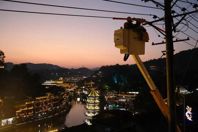 “每天晚上七點(diǎn)半,鳳凰古城的燈光會(huì)統(tǒng)一亮起,‘翠翠的水上婚禮’也會(huì)準(zhǔn)時(shí)在古城沱江中開演,屆時(shí)來鳳凰游玩的旅客們都會(huì)聚集在兩岸觀看表演。”城北服務(wù)站站長(zhǎng)龍小明介紹,近兩年來,鳳凰縣政府依托鳳凰古城的旅游優(yōu)勢(shì),大力推廣旅游業(yè)發(fā)展,通過全域亮化,將古城吊腳樓與夜景燈光緊密相結(jié)合,并打造出了“翠翠的水上婚禮”“燈光秀”等一系列觀賞項(xiàng)目。該公司積極對(duì)接古城用電需求,對(duì)原有的線路設(shè)備進(jìn)行升級(jí)改造,讓古城燈火更明,美景更甚。