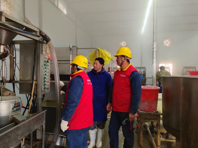 中國電力網(wǎng)訊(通訊員 李孟仁) 在年末生產(chǎn)的關(guān)鍵時期,企業(yè)用電保障至關(guān)重要。12月 26日上午11時,陜西商洛洛南縣景村鎮(zhèn)油泉村的宏鑫豆制品加工廠內(nèi)一片繁忙景象。此時,國家電網(wǎng)陜西電力張思德共產(chǎn)黨員服務(wù)隊(商洛洛南分隊)景村供電所小隊隊員何清珍、張平亮,身著紅馬甲、頭戴安全帽,背著工具包,帶著萬用表、筆記本和微信群這“三件寶”,走進了生產(chǎn)車間檢查用電設(shè)備。