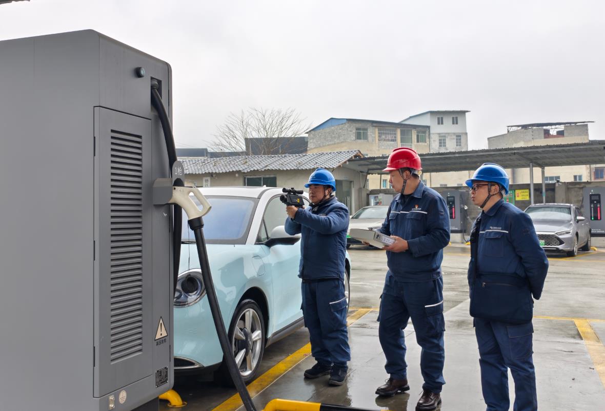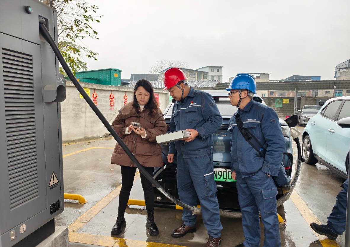 1月28日,也是大年除夕,德江迎來了出行高峰。南方電網(wǎng)貴州銅仁德江供電局城區(qū)供電所副所長陳彥和同事張權、張連輝來到德江縣晶時代充電站,對正在運行使用的6個充電樁進行全面“體檢”,確保設備正常運轉,為新能源汽車綠色出行提供充足可靠電力保障。