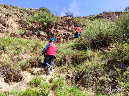 經(jīng)過一個多小時顛簸,巡線車停在一座無名大山的山腳下,沒路了,張富進與師傅們連忙下車,再次清點工具,向大山進發(fā)。山路崎嶇不平,他們艱難地一步一步向前挪動,不時仰起頭隱約可以看到頂上一座鐵塔的塔尖。