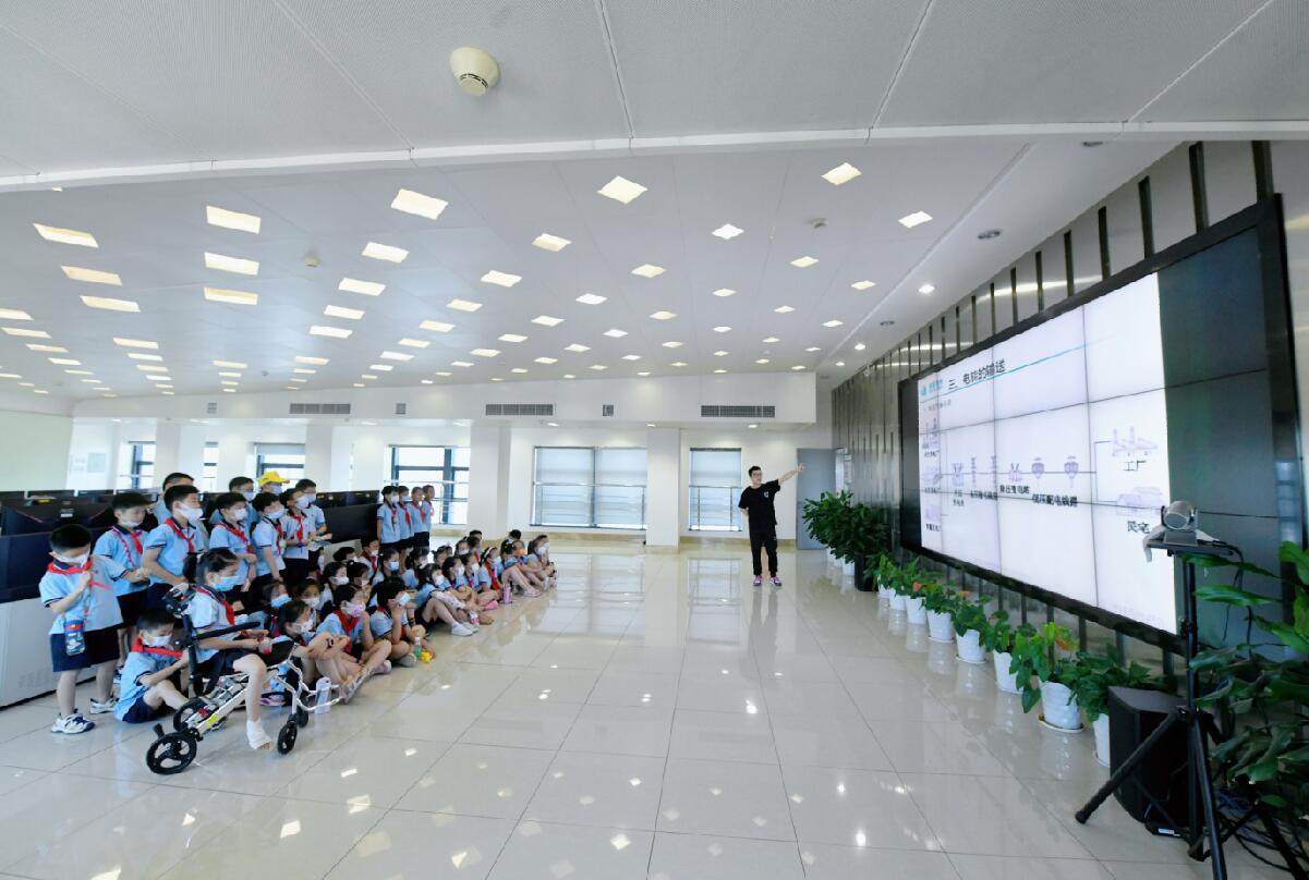 中國電力網(wǎng)訊 “家庭用電一般是220伏,但是我們管理的電卻有1萬伏、35萬伏、110萬伏……”。7月10日,在國網(wǎng)余姚市供電公司的電力調(diào)度控制分中心的大廳里,工作人員正在為40名小學(xué)生講解供電公司的工作內(nèi)容,新奇的知識和有趣的講解引起了同學(xué)們的陣陣掌聲。