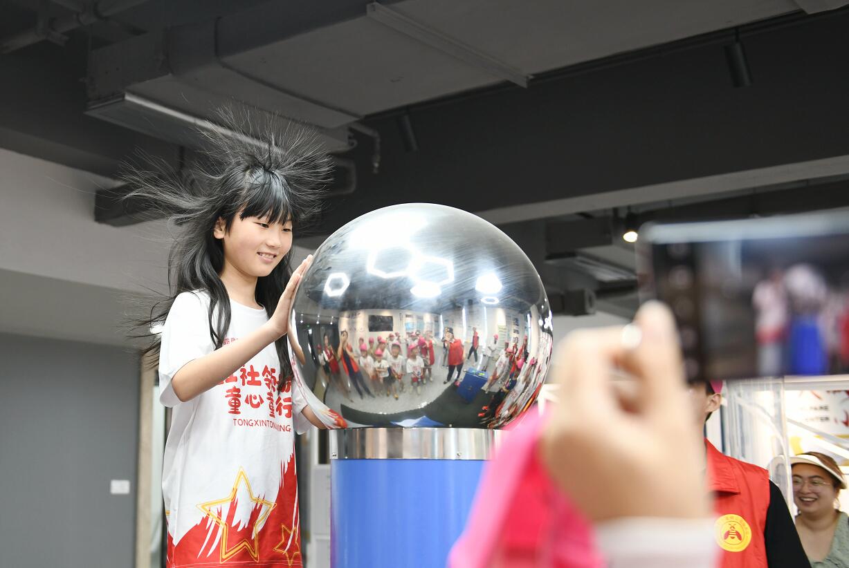 “摸一個(gè)球居然能讓頭發(fā)立起來(lái),太神奇了。”同學(xué)們懷著既忐忑又好奇的心情,紛紛進(jìn)行了靜電球體驗(yàn),連連稱(chēng)奇。一個(gè)個(gè)互動(dòng)游戲,讓同學(xué)們爭(zhēng)相體驗(yàn),樂(lè)此不疲,他們摩擦起電讓頭發(fā)起飛的樂(lè)趣,感受用自己的力量產(chǎn)生電的魅力,也讓他們對(duì)電有了一個(gè)更深入的認(rèn)識(shí)。隨后,志愿者還通過(guò)提前設(shè)置的簡(jiǎn)單電力知識(shí)互動(dòng)問(wèn)答,在講解并分析中,讓小朋友們進(jìn)一步了解用電安全,從而養(yǎng)成節(jié)約用電的好習(xí)慣。