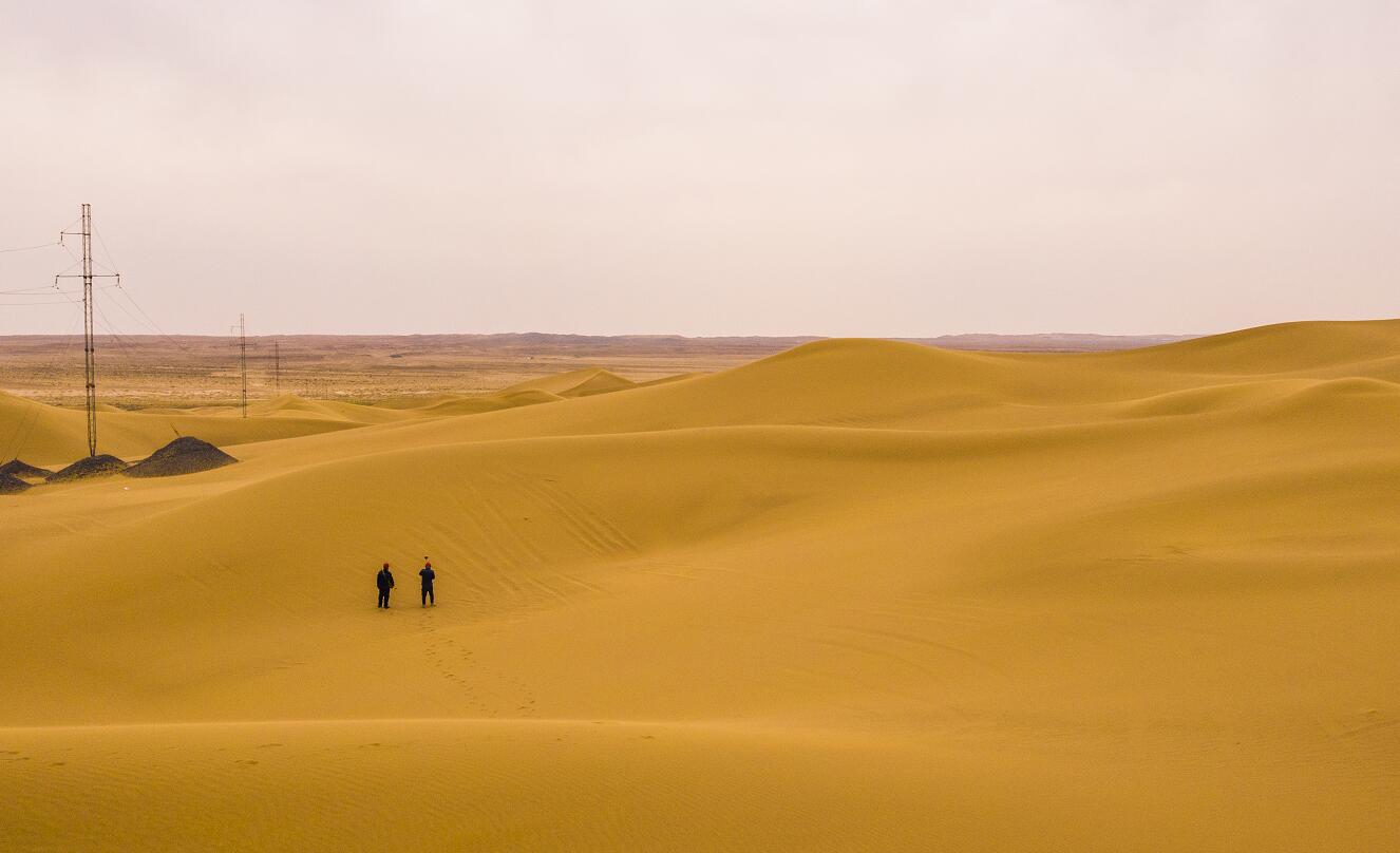 阿拉善地處大漠深處、祖國邊陲。巴丹吉林、騰格里、烏蘭布和三大沙漠密布27萬平方公里熱土?,F(xiàn)代堅強電網(wǎng)星羅棋布、縱橫交錯,6547公里輸電線路蜿蜒起伏、綿延不斷,從城市街區(qū)到牧野山村,從高原牧場到大漠戈壁,從主網(wǎng)配網(wǎng)建設(shè)到勘測一線,到處都留下了電網(wǎng)勘測人的腳步。