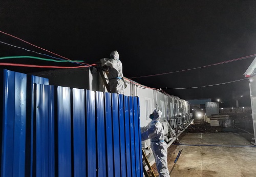 疫情就是命令,防控就是責(zé)任。國網(wǎng)東安縣供電公司黨委積極部署制定方案,以楊成為首的4名工作人員進(jìn)入防控區(qū)域進(jìn)行作業(yè),著全套防護(hù)服、攜帶登桿、搶修各類工具及材料進(jìn)入管控區(qū)域。隨后,工作人員開始對(duì)院內(nèi)的變壓器以及用電線路等設(shè)備進(jìn)行全面檢查,為盡快恢復(fù)隔離點(diǎn)供電,從排查電氣、監(jiān)測(cè)漏電保護(hù)器、更換導(dǎo)線,大家爭(zhēng)分奪秒。“夜間作業(yè)視線不好,要特別注意安全,要戴好口罩,注意自身的防護(hù)!”楊成叮囑每一位搶修人員,在應(yīng)急搶修燈的照明下,工作人員不敢有絲毫的麻痹大意,嚴(yán)密監(jiān)護(hù)作業(yè)……一道道工序有條不紊地進(jìn)行著,雖然天氣變冷,但是密不透風(fēng)的防護(hù)服和口罩很快便被汗水打濕,他們?cè)谝鼓恢衼砘卮┧?,與時(shí)間賽跑,與疫情競(jìng)速,用時(shí)6小時(shí),奮戰(zhàn)到晚上23點(diǎn)圓滿完成緊急供電任務(wù)。