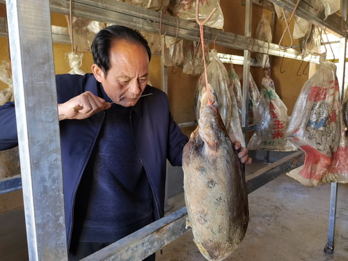 腌制火腿是黎馬村村民傳承已久的儲(chǔ)肉技藝,加上當(dāng)?shù)鬲?dú)特的氣候環(huán)境,黎馬火腿形美色艷香糯的獨(dú)特品質(zhì)一直在當(dāng)?shù)匦∮忻麣狻5珕渭覇螒綦缰苹鹜炔还庖?guī)模小,質(zhì)量也參差不齊。黎馬火腿雖然作為當(dāng)?shù)氐奶厣r(nóng)產(chǎn)品,但一直未能創(chuàng)造出良好的經(jīng)濟(jì)價(jià)值。如何挖掘黎馬村火腿特色,將鄉(xiāng)村特色轉(zhuǎn)化為鄉(xiāng)村經(jīng)濟(jì)是李華所在的工作隊(duì)長期思考的問題。