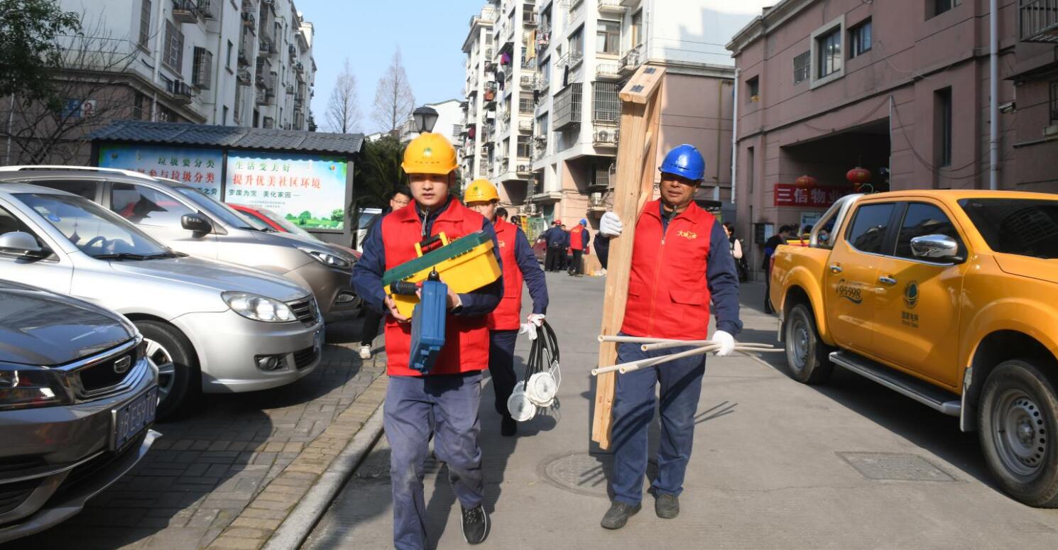 “大家按組領(lǐng)取材料、工器具,上下樓梯一定要注意安全……”當(dāng)天,志愿者們?nèi)艘唤M,穿梭在小區(qū)各個樓道間,布線固定線卡、安裝節(jié)能感應(yīng)燈、屋頂光伏板安裝……在不影響居民出行的情況下,24名志愿者緊鑼密鼓地開展光伏樓道燈改造,履行與社區(qū)居民“點亮黑樓道”的約定,現(xiàn)場一片熱鬧景象。