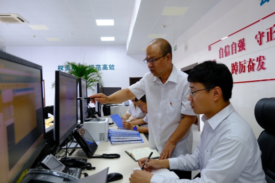 國(guó)網(wǎng)霸州供電公司工作人員密切關(guān)注電網(wǎng)運(yùn)行。 趙亞彬攝