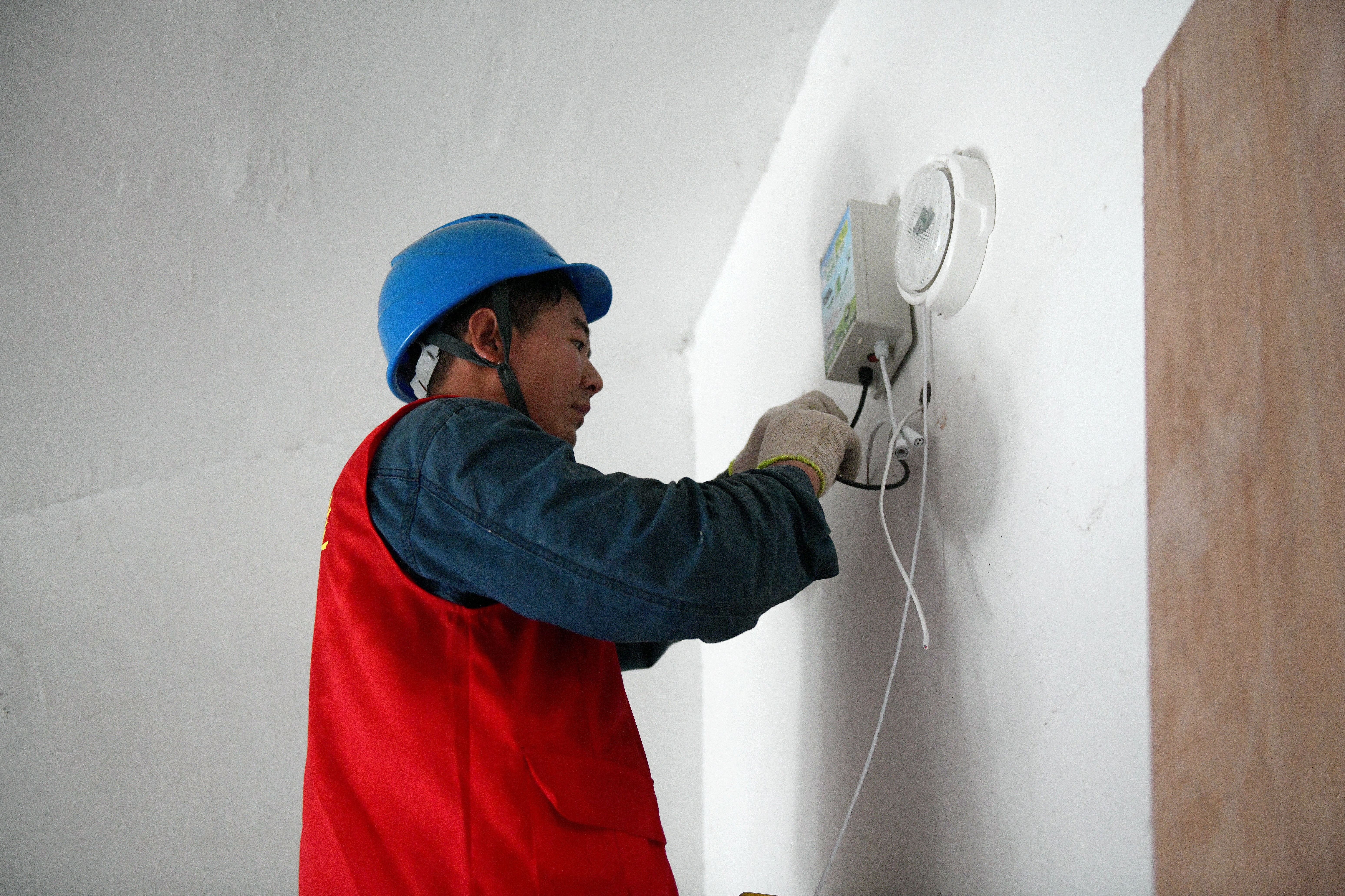“材料先按量領(lǐng)取,不夠再到集合點(diǎn)補(bǔ)充。”當(dāng)天,志愿者們四人一組,準(zhǔn)備妥當(dāng)之后,立即在小區(qū)各個(gè)樓道間穿梭行動(dòng),布線固定線卡、安裝節(jié)能感應(yīng)燈、屋頂光伏板安裝……經(jīng)過前期的經(jīng)驗(yàn)積累,志愿者改造起來配合默契,顯得更加游刃有余。