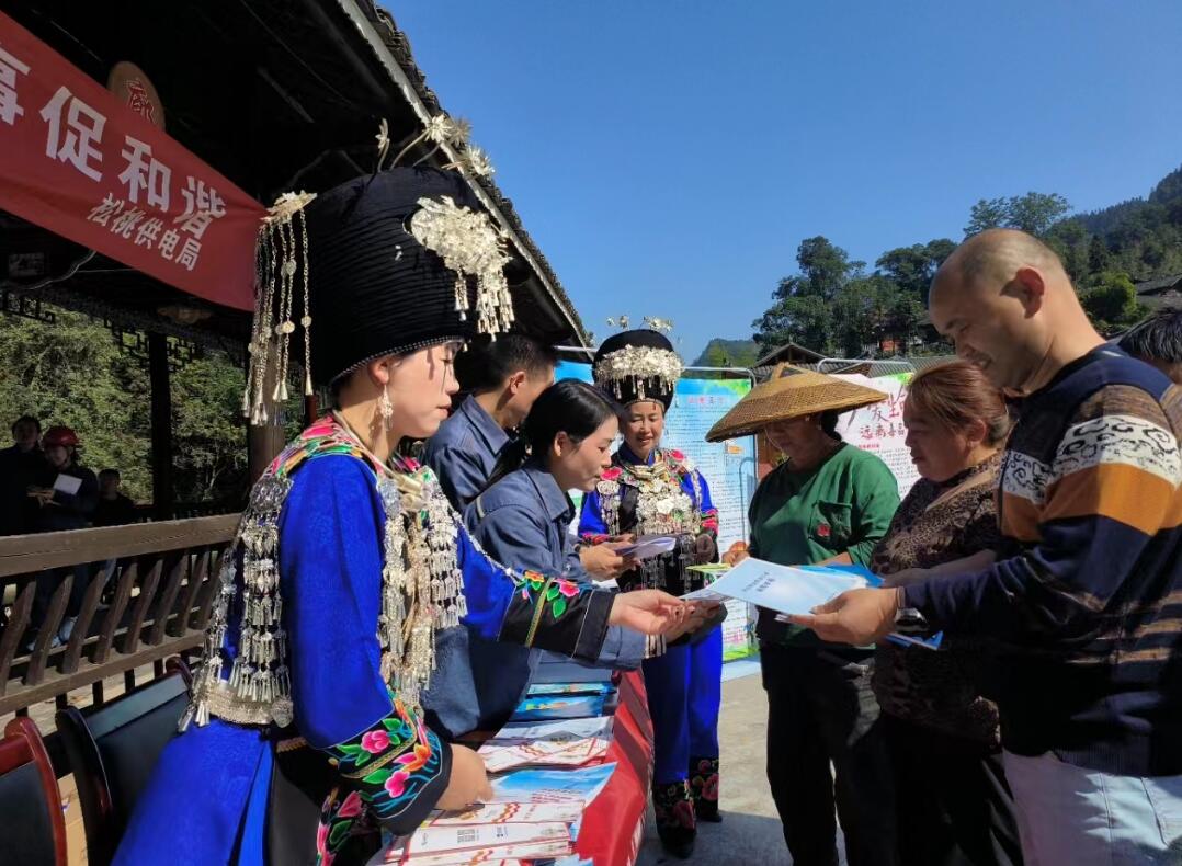 普法志愿者還結(jié)合具體的電力設(shè)施盜竊、破壞等案例,編印成冊(cè),向過(guò)往群眾發(fā)放安全用電法律知識(shí)宣傳單等資料,提高群眾學(xué)法積極性。同時(shí),志愿者還搭建咨詢(xún)臺(tái),用“苗語(yǔ)+漢語(yǔ)”相結(jié)合為群眾現(xiàn)場(chǎng)講解《電力法》《電力設(shè)施保護(hù)條例》等法律法規(guī),推廣科學(xué)、安全、節(jié)約用電知識(shí),有效增強(qiáng)村民的法治觀念和法律意識(shí)。“我的漢話(huà)只會(huì)一點(diǎn)點(diǎn),多虧你們的苗語(yǔ)翻譯得好,聽(tīng)得懂,真是方便多了!”苗族群眾在法律宣講聽(tīng)后喜悅之情溢于言表。