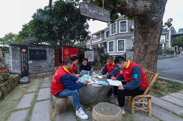 國(guó)網(wǎng)杭州市余杭區(qū)供電公司員工與小古城村村長(zhǎng)商議低碳鄉(xiāng)村建設(shè)