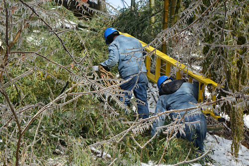 該公司組織突擊隊積極應(yīng)對寒潮, 對受損電力設(shè)施進行搶修