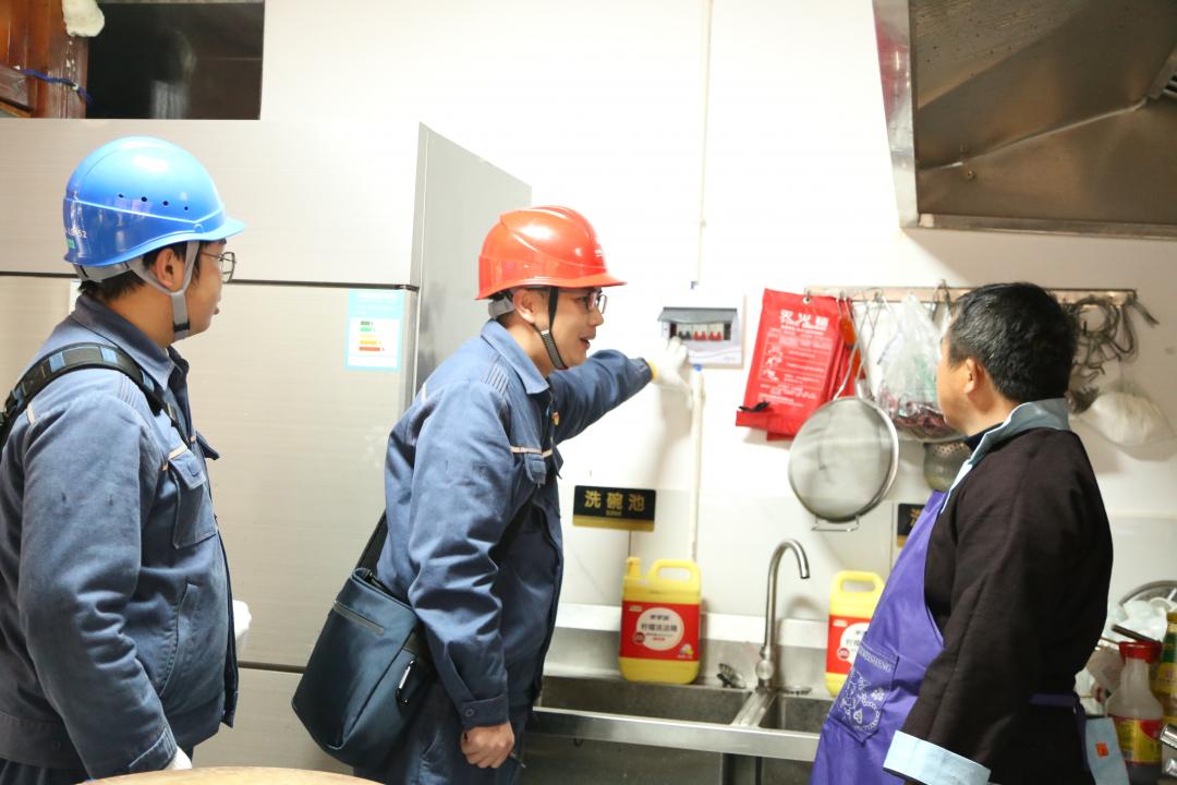 都勻荔波供電局組織黨員骨干走進(jìn)瑤山古寨景區(qū)民宿商戶檢查電廚房用電情況 王文濤攝