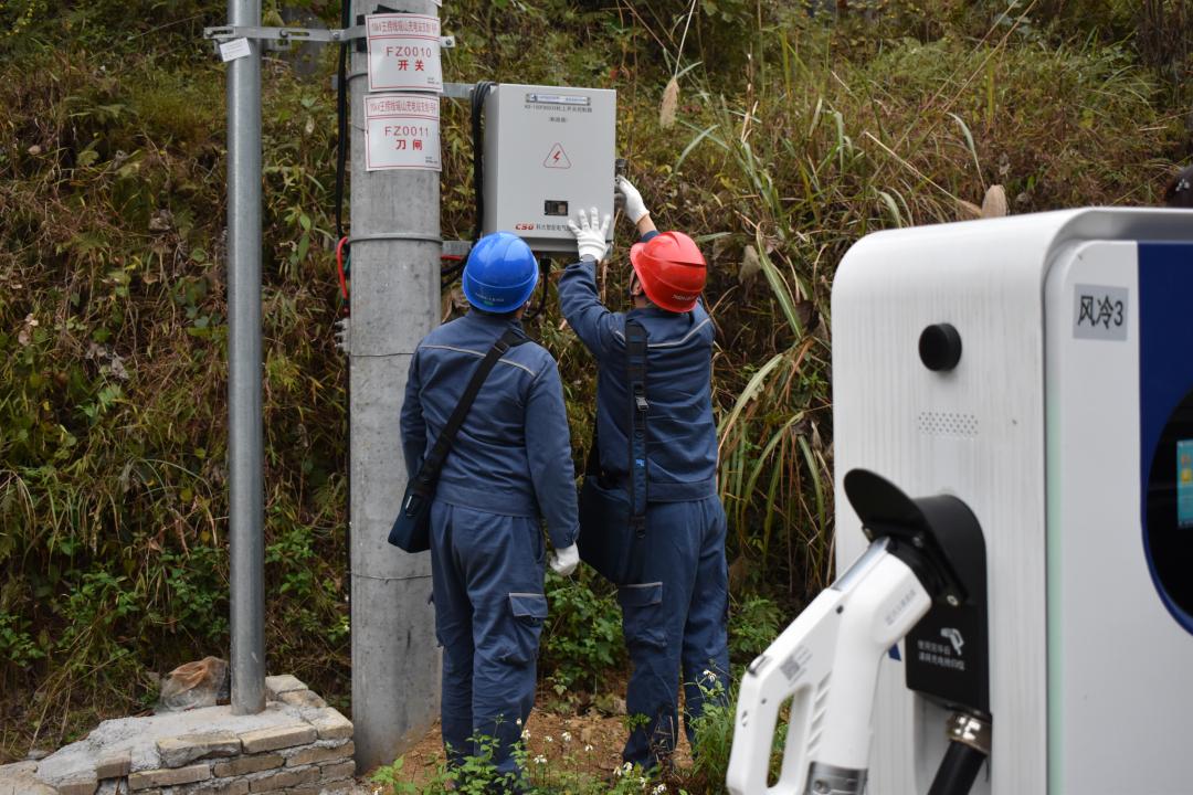 都勻荔波供電局組織青年服務(wù)隊(duì)對瑤山古寨充電樁運(yùn)行情況進(jìn)行安全排查 王文濤攝
