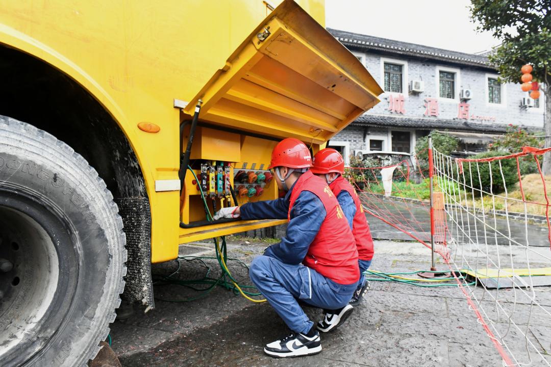 據(jù)悉,此次活動通過國家文化云、央視頻、新華社等多個媒體平臺全程直播,讓全國各地的網(wǎng)友得以透過屏幕,沉浸式感受隆里“村晚”的獨(dú)特魅力。為確保活動期間電力安全穩(wěn)定供應(yīng),錦屏供電局主動對接主辦方,組織人員多次到現(xiàn)場勘察,根據(jù)現(xiàn)場用電需求情況制定保供電方案。