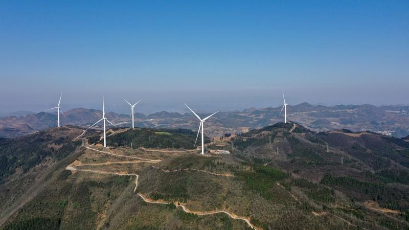 據(jù)了解,興義白碗窯風(fēng)電場位于貴州省黔西南州興義市白碗窯鎮(zhèn)高山上,共裝有10臺風(fēng)機(jī),裝機(jī)容量31.6兆瓦,風(fēng)資源充足時,單臺風(fēng)機(jī)轉(zhuǎn)一圈大約能發(fā)電5千瓦時,大風(fēng)天氣一天發(fā)電量可達(dá)6萬千瓦時。2024年,該風(fēng)電場總發(fā)電量超5600萬千瓦時,經(jīng)110千伏花月變和110千伏木賈變接入南方電網(wǎng)。