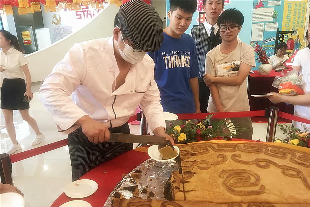 終于迎來了大飽眼福大飽口福的時刻!每個人看到這個直徑為1米的月餅都不禁感嘆!上午10:58分,大月餅開始分切,工作人員將大月餅切成一小塊一小塊的遞到每個人手中。大家都說這樣眾人分享月餅的方式,仿佛找到了久違的中秋節(jié)吃月餅的習俗,團團圓圓,共享節(jié)日快樂。