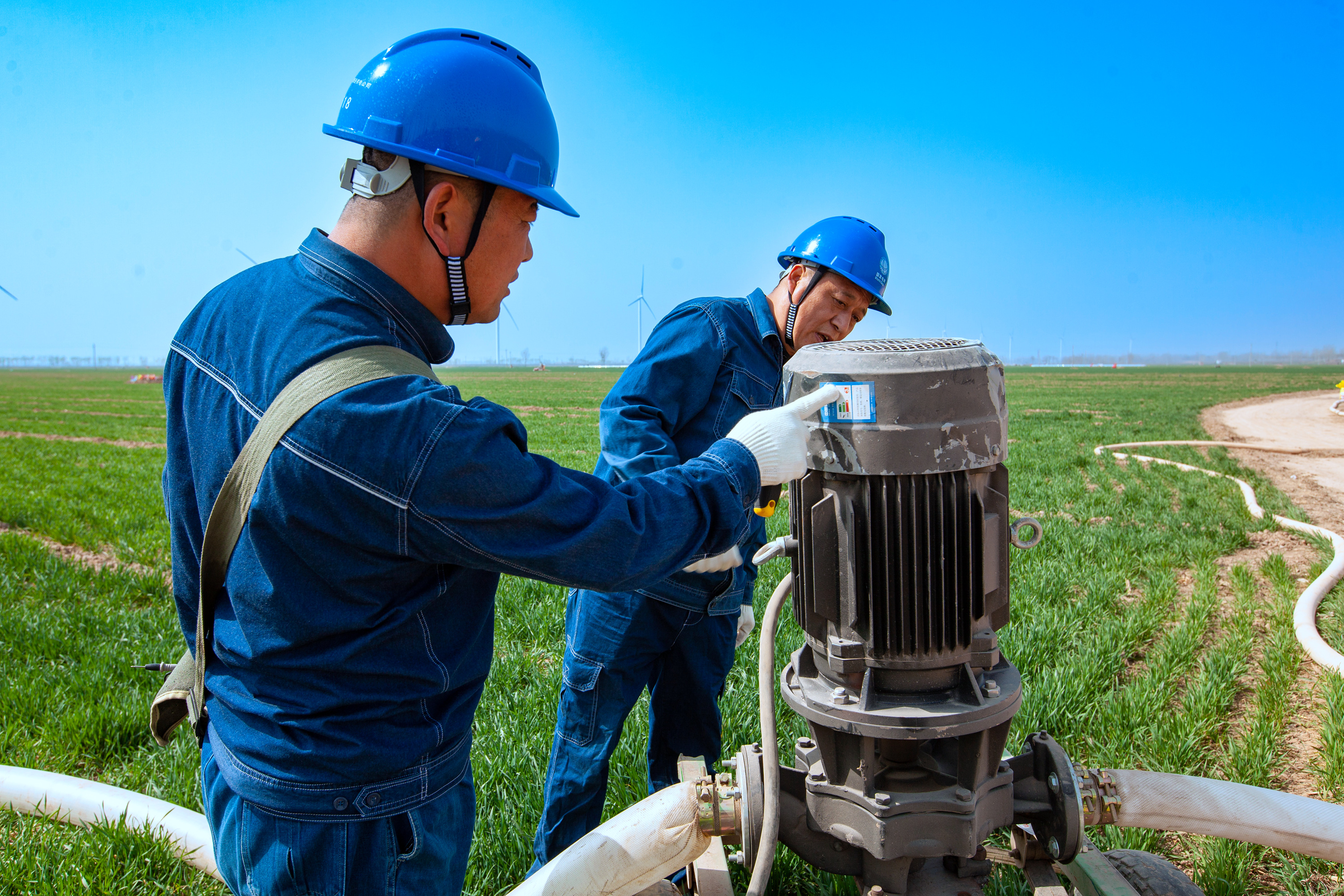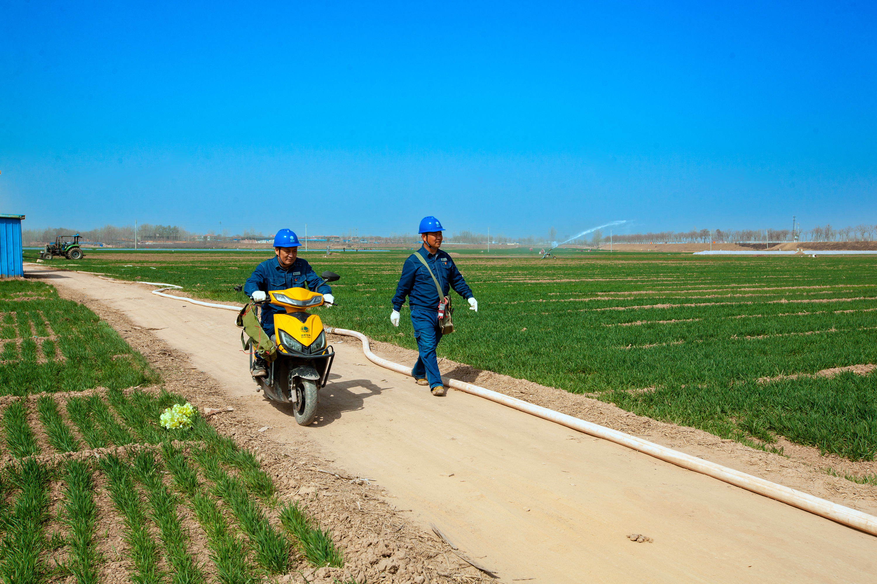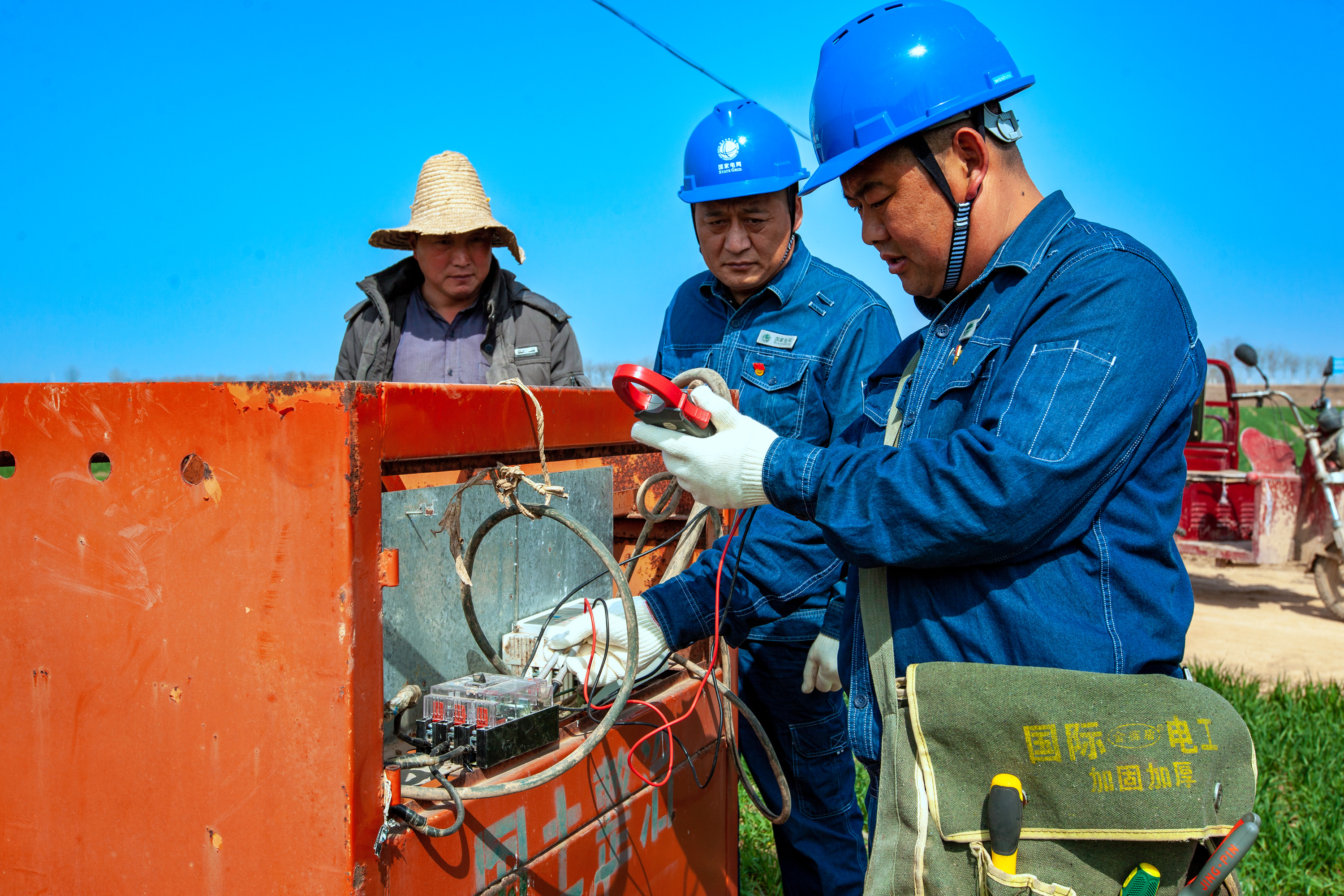 3月9日,在河南滑縣四間房鎮(zhèn)麥田里,國網(wǎng)滑縣供電公司工作人員呂衛(wèi)兵、韓記偉在檢查農(nóng)田機(jī)井和噴灌裝置用電設(shè)備時(shí),發(fā)現(xiàn)一處安全隱患,馬上糾正并對客戶進(jìn)行用電安全知識告知。