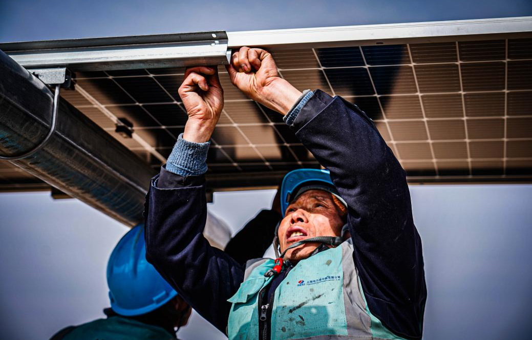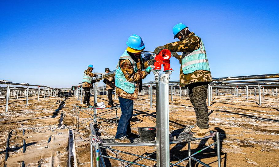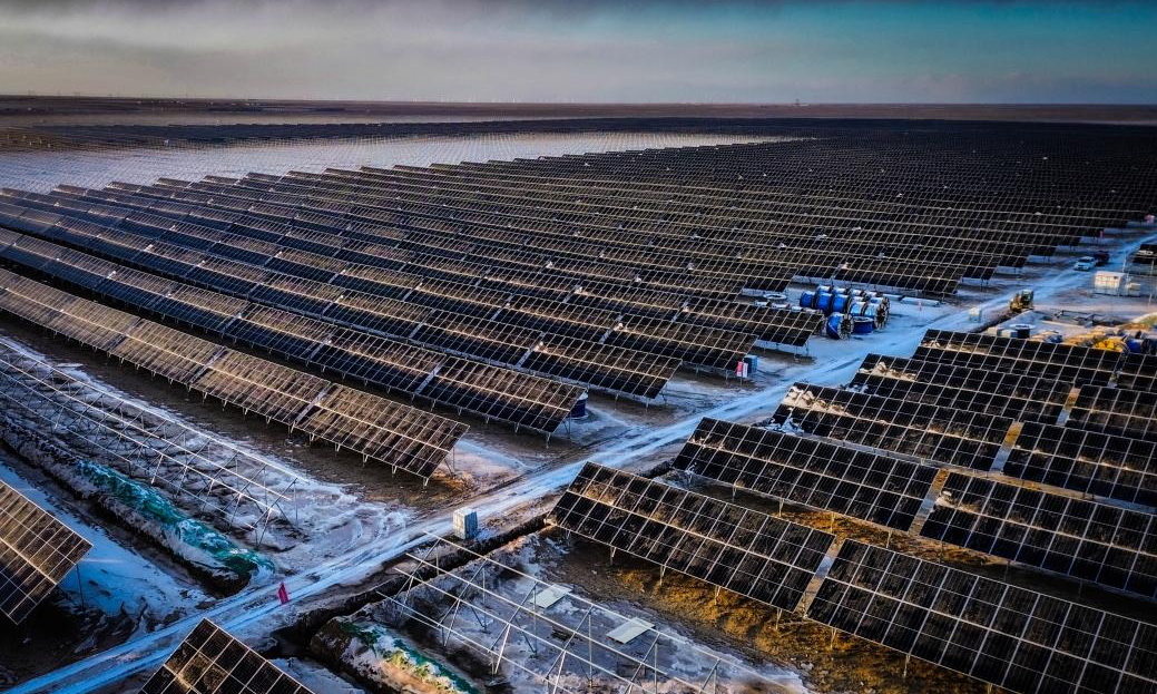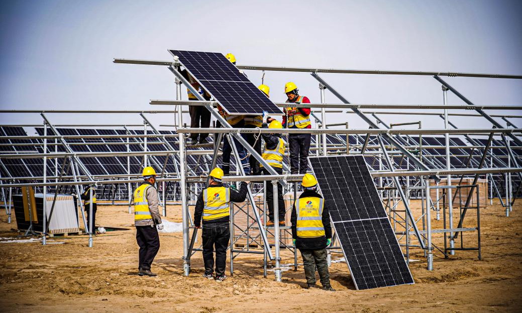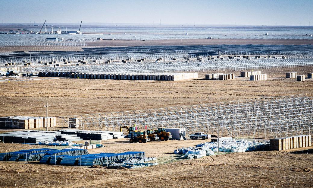 蒙陜寧三省交界的毛烏素沙地腹部,國家能源集團國電電力蒙西鄂爾多斯采煤沉陷區(qū)300萬千瓦光伏基地項目建設如火如荼。作為國家第二批以沙漠、戈壁、荒漠地區(qū)為重點的大型光伏基地項目之一,10.5萬畝的“光伏海洋”每年將把近57億度綠色電能從蒙西戈壁輸送至黃海之濱,滾滾電流跨越1300多公里長途跋涉,將有效緩解山東這個東部沿海工業(yè)大省的電力缺口,為東部地區(qū)的經濟社會發(fā)展提供強大的綠色能源保障。該項目已完成175萬千瓦容量樁基施工,65萬千瓦容量支架施工,25萬千瓦容量組件安裝,1號升壓站已具備并網條件。