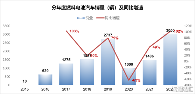 2022年氫燃料汽車市場銷量整體翻倍,平均裝車電量也有了大幅提升,所以不是市場總量的原因。