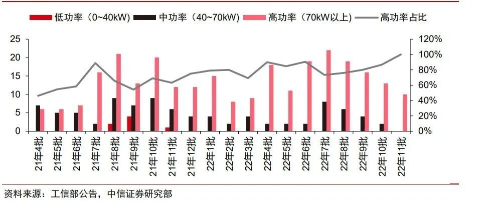 工信部推薦車型目錄方面,2022年第1~11批總共入圍車型272款,較2021年全年12批的車型增加29%,入圍的燃料電池廠商68家,較2021年全年12批的廠商增加13家。