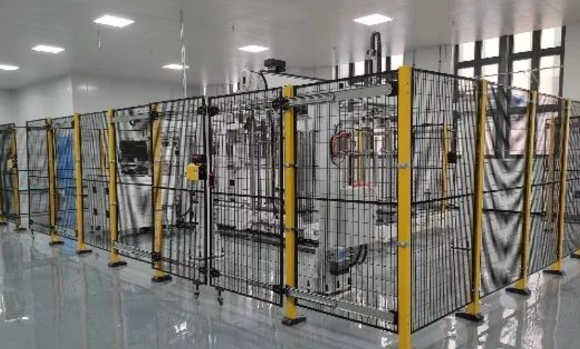 據(jù)了解,這兩條電堆產(chǎn)線在行業(yè)內(nèi)率先實(shí)現(xiàn)了自動化與數(shù)智化,并且是國內(nèi)首創(chuàng)的金屬雙極板+電堆裝配全流程產(chǎn)線,沖壓、焊接、涂層、電堆裝配、密封膠線粘接等各個工序之間通過機(jī)械手抓取和AGV智能小車傳送實(shí)現(xiàn)自動連接,整個過程“無人化”;同時工序上下料、工藝處理、在線檢測等環(huán)節(jié)之間的傳動也全部實(shí)現(xiàn)了自動化。值得一提的是,不同工位間的傳動采用的是高速磁懸浮技術(shù),定位精度達(dá)到微米級。