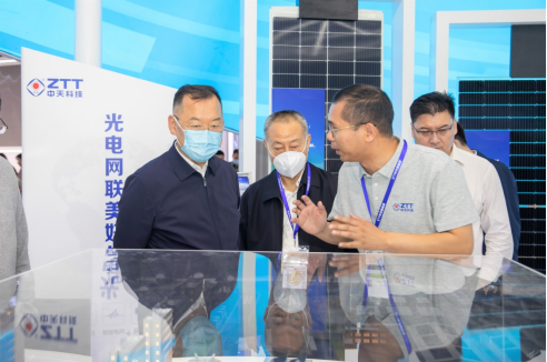 國華投資、江西電建等單位高層領(lǐng)導(dǎo)一行先后蒞臨中天科技展臺,詳細(xì)了解中天科技新能源產(chǎn)業(yè)的發(fā)展情況。
