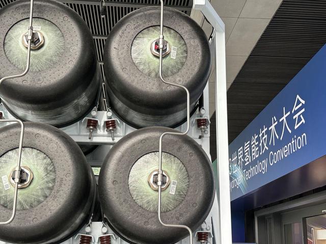 圖為某品牌車載儲氫氣瓶。新華社記者劉宏宇 攝