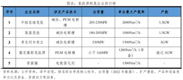 制氫企業(yè)排名前列的有:中船派瑞氫能、隆基氫能、考克利爾競立、塞克塞斯氫能源、青騏驥。