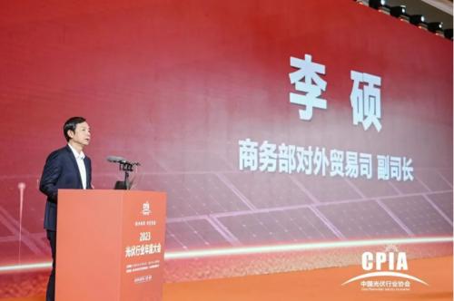 李碩副司長在致辭中表示,中國光伏產(chǎn)業(yè)作為代表高技術(shù)、高附加值的綠色轉(zhuǎn)型產(chǎn)品,已成為出口的新增長點(diǎn),并在全球市場占據(jù)領(lǐng)先地位。今年,我國光伏出口呈現(xiàn)出韌性強(qiáng)、布局優(yōu)、潛力大三大特點(diǎn),尤其對“一帶一路”國家、東盟和非洲的出口增長顯著,且在綠色低碳能源轉(zhuǎn)型的大背景下,全球市場對光伏產(chǎn)品的需求增長依然呈現(xiàn)較好勢頭。同時(shí),光伏出口也面臨著價(jià)格下跌、貿(mào)易風(fēng)險(xiǎn)和企業(yè)開拓國際市場困難的三大挑戰(zhàn)。